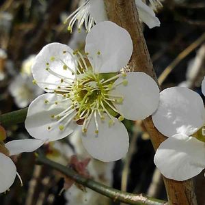 白梅 とにかくおしべが長い。 雄蕊のシベという字には心が3つも入っている。 象形文字、わかる。