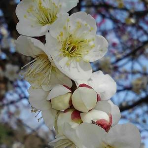 公園の梅林のハクバイ(白梅)が、やっと咲いてきました。 まだ満開ではないですが、今年は遅いと思います😓 この先、急速に暖かくなって来るのでしょうか?