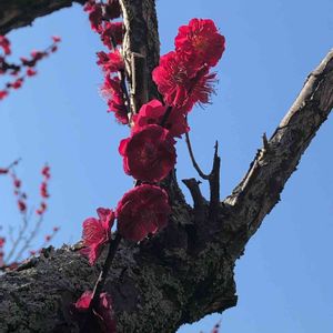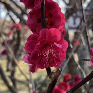 春みたいな陽気に誘われて、小さな梅園へ。 カメラ持参の人が多かったな。 写真のは鹿児島紅という梅。 深い紅色が素敵✨