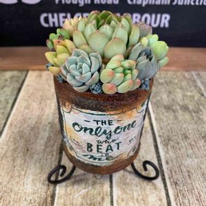 新入りのブルーバード♡ まあるくてかわいい色で 一目惚れ(*'ω'*) まだ発根してないからミルク缶の 上にちょこんと滞在🌸