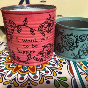 リメ缶作り🎶 はまりそう💕💕 大きい缶は、わたしが!小さいのは、娘が作りました💕💕 2つ共可愛い❤️😍