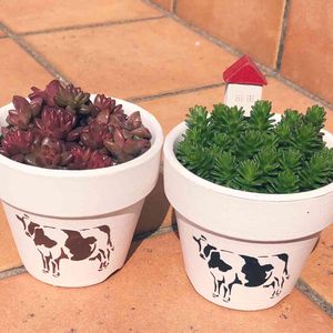 週末もいい天気ですね☀️ 花粉🤧で大変ですが。皆さんは大丈夫ですか? 私は、目が痒くて大変です😅 牛鉢🐄🐂なかなか植えられずやっと登場です😊♫ 45さんのこの牛柄ビビッと来てお願いしたら、黒と茶色柄の2色作ってくれました。 ずっーと何植えよう?セダムがいいなぁ。って思っていて、やっと庭のセダムたちをプチプチ集めて挿して完成👏 うん。満足じゃー。45さんいつもありがとう😍