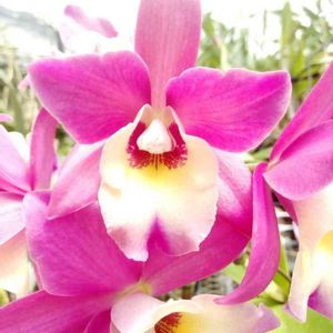 Lcn. Chien Ya Cranberry 'Pink Beauty' 鮮やかなピンクにクリームがかったリップの多花性中輪カトレアです❕ うまく作ればボール咲きしてくれそうです😁