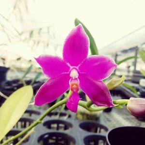 ファレノプシス プルケリマ。 5月のサンシャインで、新垣洋ラン園さんのところで購入😊 本当に小さな花がやっと一輪咲きました🌸 これからたくさん咲いたら、すご〜く可愛いと思います💕 花の顔もとても美人です☺️