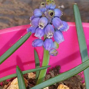弥生ですね〜🌸 ムスカリの花が今年も咲きました。 栄養不十分って感じで、まだ1個しか咲いていません。 今年は土を代えてあげとようかな‼️😅