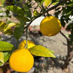 おはようございます。 我が家の柑橘たちです。 ①湘南ゴールド 今年は5・6個なってます。食べられるのは来年の4月。それまで、お預けです🐶 ②酢橘 8月に4.5kg収穫しました。まだ、いくつか残っています。