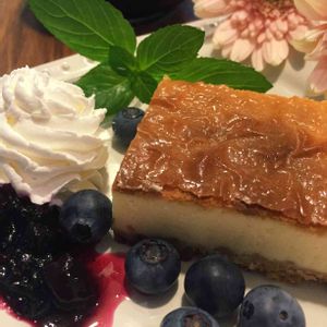 はい(^O^)/ チーズケーキ焼きました 今年もブルーベリー沢山採れてるのでジャム作り雑草扱いのミント🌱を飾り カッコつけてみましたよ ガーベラは初めて入った花屋さんが サービスでくれたもの 先週は一周年、1000投稿に 沢山のいいね!コメントいただいて 泣かないけど😁涙でました💧 本当にありがとうござきました これからも楽しんで続けていきたいと思っているのでよろしくお願いします♡︎( ´ ` )