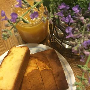 おやつの時間ですよ〜♪ 自家製レモンジャム を使ったパウンドケーキ 庭のキャットミント🌱 今日は仕事が暇で早くの帰宅でした