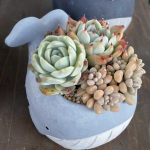🐳クジラさんポット寄植え 窮屈そうだけど、可愛い😍 あちこち植え替えしてる間に、名前はわからなくなりました🤣 暖かくなったので、多肉棚のペンキ塗り替え♪(๑ᴖ◡ᴖ๑)♪ サンドペーパーで古いペンキを落としてたら、腕が筋肉痛😅 きっと、なんかいい道具があるはずですよね(*´∀`)