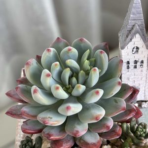 セデベリア属ブルーエルフ🩵 ミントブルーの葉先がほんのり赤くて可愛い子😍 箱庭の片隅ですくすく育ってます(˶ᐢᗜᐢ˶)