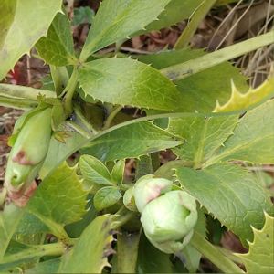 1/9 (月)🌤🌥 💚🤍クリスマスローズ🤍💚 ヘレボルス・アーグチフォリウス Helleborus argutifolius ※キンポウゲ科 ※クリスマスローズ属(ヘレボルス属) 💗💚クリスマスローズ💚💗 ヘレボルス・ステルニー Helleborus ×sternii 1/9付📸📱💗💚🤍駅前公園花壇にて💕クリスマスローズ蕾〜開花観察中 ✨🏷㊗️六周年記念投稿に参加させていただきます💞