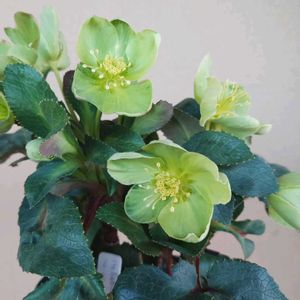 2/20 (日) ☁️🌥 🌿💚クリスマスローズ💚🌿 ヘレボルス アゥグチフォリウス Helleborus argutifolius 別名❀✿クリスマスローズ ※キンポウゲ科 ※クリスマスローズ属(ヘレボルス属) ♣️ヘレボルス・アーグチフォリウスは、有茎種(立ち上がった茎に葉をつけ、頂部に花を咲かせる)のクリスマスローズ。常緑の多年草で、さわやかな黄緑色の丸い花を咲かせる。葉は3つに大きく切れ込み、葉縁にはヒイラギに似た鋸歯(きょし)がある。葉の造形的な美しさに定評がある。♣️ 2/19付撮影📸📱🌿💚駅前公園花壇にて💕