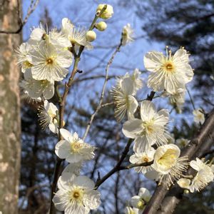 今日の花 ウメ 梅 白梅 春一番で花は散ってしまったが ポチ!して置いて良かった😊😁