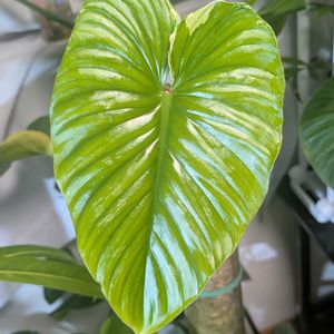 Philodendron plowmanii variegatedをお迎えしました✨ 葉っぱは光沢のあり波打つ様な葉脈と緑と黄緑の2色で美しく彩られてます😳 アラティウンダラタムと同じく茎にはゴワゴワしたヒレがついてて魅力的。 最近よく出回ってるグロリオーサムの斑入りも魅力的ですが、あっちは多湿性かつ白斑よりなんで少し難しいので、プロウマニーにしました😁