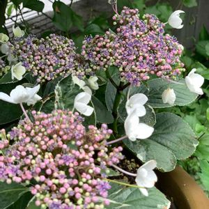 錦の日参加させて頂きます🍀 斑入り山アジサイ 九重山 淡い葉色に白い斑入り葉っぱは薄くて花色も合わせて柔らかい雰囲気の山アジサイです🌸