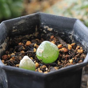 本日お迎えしました。 コノフィツムのブルゲリと風鈴玉です。 ピンセットで潰れないように細心の注意を払って鉢に植えて(置いて)みました。 こんなに小さくてちゃんと育てる事ができるのか、とても心配です。