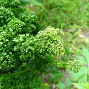 暑いですね。 花の水やりも早朝にやってます。 水やりをしていて そうそう、パセリあったよな~ おひたしにして食べよう♪︎ と思ってパセリを見たら… (ФωФ)花…咲いとるやんけ。 食べるのをあきらめました。