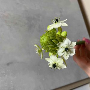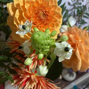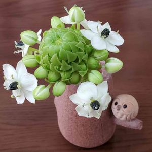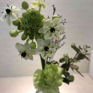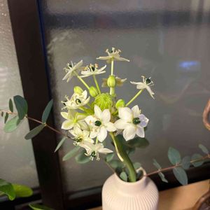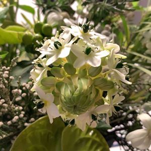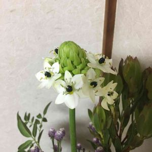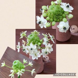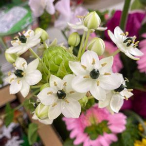 お花の名前教えて下さい✨ アレジメントの中に入っていたのですが まぁるい蕾が開いたら、カワイイノ( ⌯'-'⌯)♡ オーニソガラム・サンデルシーと 教えていただきました✨ ありがとうございます(ㅅˊᵕˋ*)♡