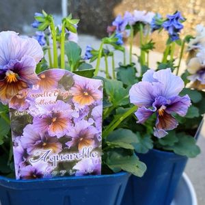 サトウ園芸「ヌーベルヴァーグ アクアレール」 今期最初のサトウ園芸さんのビオラはアクアレールさんです🌟 ヌーベルヴァーグらしい何とも言えない色😍寒くなるまでにしっかり株を育てないと🎵