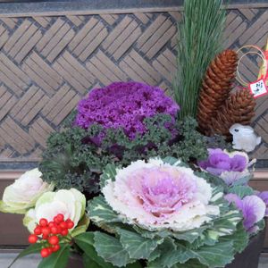 大晦日です✨ 葉牡丹の寄せ植えをお正月🎍バージョンに してみました。 玄関でお出迎え~ 1年間見て頂き有り難うございました😊 沢山のお励ましに感謝します😊 良いお年をお迎えください🙇♀️