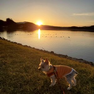 今年の4月から始めて沢山の花友さんと花心や季節を一緒に楽しむ事が出来ました。😊 ありがとうございました☺️🙆 来年もそらちゃんと庭でよろしくお願いします😻😸😽🙋🙏 湖山池の夕日