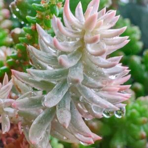 ① 今は土砂降り 雫の飾りを付けて 多肉さんが綺麗✨💖✨日
