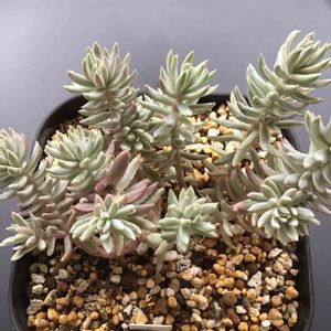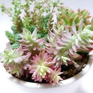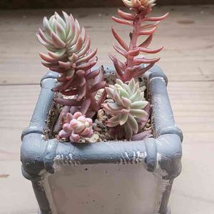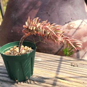 今年の2月17日にアップした寄せ植えの一部です。名前がわからないままなので、再投稿します。葉先が薄ピンクで、葉が螺旋のように生えてる感じがします。