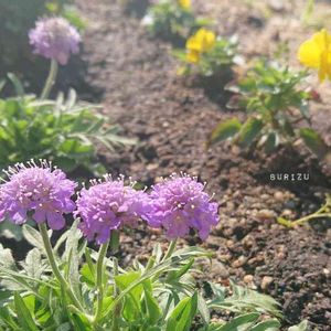 お庭にスカビオサを植えました☺️ 秋に買ったスカビオサは冬の間、 お花がお休みでまだ咲いておらず、 咲いてる苗を見つけたので植えちゃいました🥰 お花が少ないお庭が 少し明るくなりました🎶