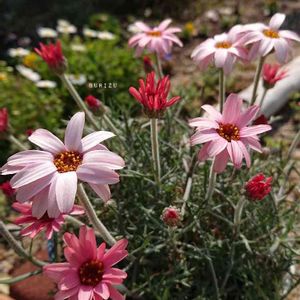 ローダンセマム アプリコットジャム 赤い蕾が咲き始めました☺️