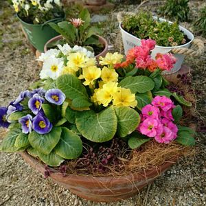 プリムラジュリアン🎶 お水のあげかたが悪いのか葉っぱに水がかかって黄色くなっちゃいます…💦 プリムラって難しい… 今のところ枯らしてません😅