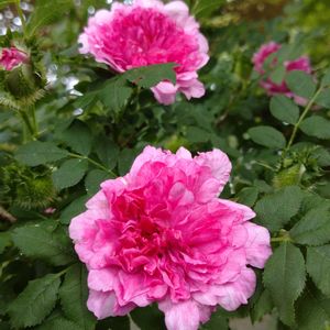 梅雨入り☔しました グリーンローズ キュッと締まりピンク🩷のエッジが更に濃くなって可愛いです🥰 日に日に顔を変えていくアエオニウム💕 みんなおちょぼ口になって来ています🤭 (屋根のある所から📷)
