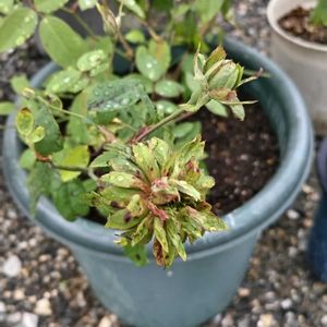 🏷️nami's gardenの薔薇and ミニ薔薇 🌹 pic①🎞️ ミニバラ・モカ🤎 pic②ミニバラ・プリズム🧡 pic③ミニバラ・グリーンローズ💚 pic④ミニバラ・ウィンターマジック❄️ [ミニバラだけど、強香です🫧] そして pic⑤は🌹薔薇・ディスタントドラムス🌈 先日🗓️↩️ 薔薇の蕾を付けた枝が🌹 何本も🥀 力無く ふにゃり⤵️💧 くったりと⤵️⤵️🫠 項垂れていました⤵️🥀 水切れ⁇🤔みたいに 見えるけど🔍 どうも🙄 バラクキバチの仕業みたい🤢💢 クロウリハムシも多いし🪰🟠🫨 嫌んなる🥵💢🥊 蕾たちよ😲 早く咲いておくれ〜🌹