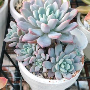 あまり調子が良くなかったブルーアップル🍏 1年前に植え替え だんだんと元気になって子株が沢山😍親株も2つになろうとしています♪ 青白い葉がうっすらと紅葉し始めて綺麗です グリーンローズも肉厚になり少しピンクになった子もちらほら🥰 また可愛い姿を見せてくれる季節がやって来ます