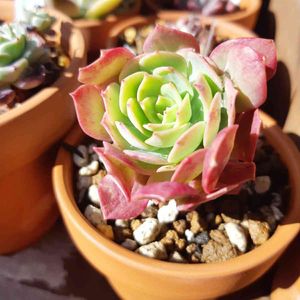 この鉢は春の寄せ1号で1ヶ月半経ちました。隙間が上手い感じで埋まってきたのは善きかな🎵で、やはり春の生長は見てて楽しいです☺️ (ミドリンなのは仕方ない😺) ◆アドルフィーコッパー お日様に合わせて首を振るのは、グラプトの専売特許かと思いきや貴方も出来たのね😊 ◆シャイアン 立田と呼ぶにはまだまだかなぁ😺 ◆紅葉祭り🍁 できればそのスタイルの維持をお願いしたい❕ ◆グリーンローズ 何か変化される予定📆があれば、連絡願います。 素焼きの鉢が良いのは判ってますよ😃。でも重くてさー、腰がねー...。
