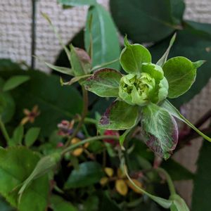 グリーン ローズ 別名 ロサ.キネンシス.ビリディフローラ リュウイーソ バラ科 バラ属 原産地 中国 原種交雑種 花期 四季咲き ・八重咲きの四季咲き種。 ・花径は4cm程度。 ・無花弁で、花のように見える部位は萼片と苞の集まりだそう。 15年くらい前にフラワーアレンジに使った残りを挿し木したもの。その時調べた名は、リュウイーソ。 元気だったりひ弱だったりしながら毎年咲いてくれています。 1度か2度投稿しましたがもう1度。 気温が低いせいか赤味が強く美しく咲いています。