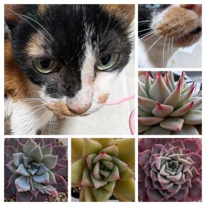 ニャンニャン祭り おめでたい今日 うちのニャンコ達は 皆様出てこない 仕方なく朝撮った ミンミと お気に入りエケベリアで参加します エケベリアは左から ペガサス グリーンローズ ルージュ 真ん中はトスカネリ ミンミの唇は黒いの びっくりした時があったよ 2枚目は 先日投稿したアドロミスクス属の続き やはり今が新芽時みたい 神想曲 茎が束子色の毛羽立ってるのが特徴だそう 何年にもなるけど 動きは少ないてす 3枚目はピンクスパイダー 鈴鹿の無人販売もなさってるはなさんから 頂きました 4枚目はレッドボール いまいち紅葉でしたが ひとつが何故か3つのボールになった不思議〰️ 5枚目は 増殖に努めようとしたアドルフィファイヤーストーム 寒さに弱くトロケた者あり慌てて保護保護💦