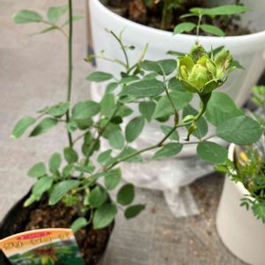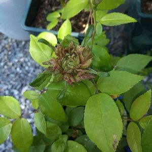 🌹グリーンローズ 本名は、ヴィリディフローラ😄 去年の挿し木品、咲きました。 元気の良いオールドローズchです。 まだまだ小さいので この後、花柄切りました。😆 🏷️水曜ローズショー参加します。