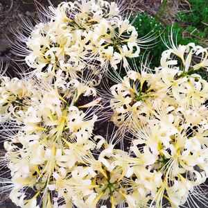 こんにちは🌈 🤍彼岸花(曼珠沙華)です。 散歩道に赤と白の縁取りの彼岸花と並んで咲いていました。とても綺麗でした🤍🤍🤍 少し、クリーム色にも見えました✨💖✨