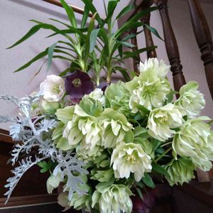 クリスマスローズ パーティードレス系ダブル 株がしっかりで花も沢山付けて くれました❣️(*˘︶˘*).。*♡