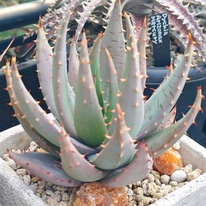 これから青白く、さらにはピンクが飼った幻想的な色合いになってくれるはずのアロエ、ペグレラエ。このアロエに「若返りアロエ」という変な商品名が付いていた。なぜ「若返り」。商品名をつけるにしても、もっとマシなものを!