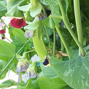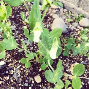 おはようございます☔️ 半額で購入したえんどう豆の苗がやっと花を咲かせました。 他所のお宅の畑ではもう大きく育って実がなっているところもあるようですが 遅れて売れ残りの苗を見つけて庭の空いているところに適当に植えたので まだまだこんなものですが、やっと小さな花が… 実がなると良いなぁ