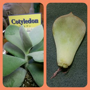今日、狩りをしたコチレドン属、嫁入娘ですね。 コチレドン属には、熊童子や子猫の爪が有名ですね。 コチレドン属は、葉刺しでは発芽しない(しにくい)のも知られています。 しかし、この子葉から発芽してたんですよ。ふーん、狩りしとこと、思いましたね。