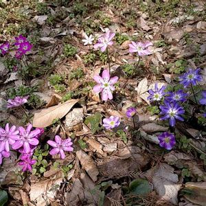 雪割草 小さい花が咲いていると、危うく踏みそうな場所にあって、以前は通ることがない場所だけれど、庭の端っこに明日葉を植えろと友人が種を沢山持ってきて、どうしてもこの場所が通路にせざるを得ない。 数日中に鉢上げして、適当な場所に植え直したい。 いくつかの株があるので、それぞれが少しずつ色も違っているようだ。