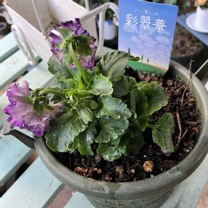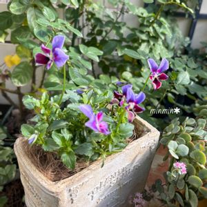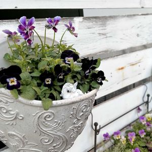 ビオラ・ミステリアスバニー 🐰 壁掛けの鉢に植えました。 パープルグラデーションが美しいです✨ 一緒に植えたブラックビオラは地植えしていたのだけど ここに移植してみました