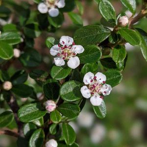 コトネアスター(ベニシタン?) バラ科シャリントウ属 秋に赤い実がたくさん生っていたが、こんなにかわいい花が咲くとは🌼