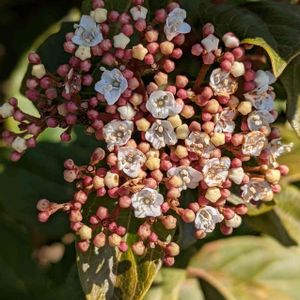 ビバーナムティヌス ガマズミ科ガマズミ属 📝ビバーナムは外国産ガマズミ属の樹木を指す。 果実は楕円形の青紫色。