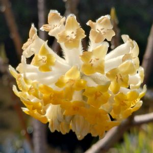 今日のお花 🍀ミツマタ ジンチョウゲ科 ミツマタ属 小さな可愛い小花がいっぱい! 心温まる色合いがやわらかです