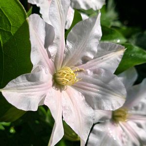 "クレマチス白馬" 地植え経年たっており 大株で毎年大きくて 沢山の花数を楽しみます