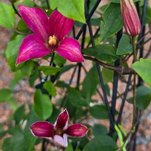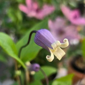 雨模様の庭🪴 今ごろ⁈冬咲きのクレマチスカリシナが咲きだした😆
