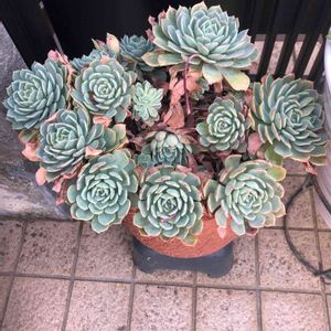七福神が綺麗になってきたー😭💕 夏から何だか下葉が次々枯れて どんどん小さくなってた七福神💦 このままダメになるのかなーって 心配しながらハウスにしまいました😔 最近はノーマークだったから 久しぶりに見てみたら復活してるー‼️ ロゼットが綺麗になってる♡ 大きいプランターに4株植えてるんだけど みんな復活してるし子株も頑張ってる✨